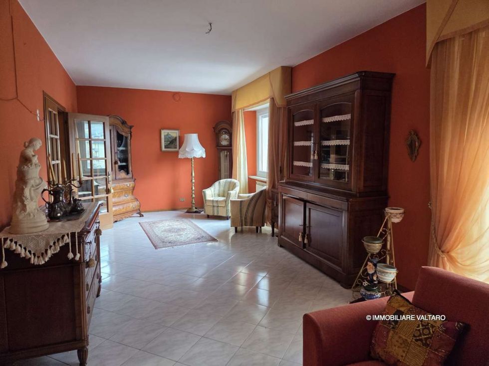 an apartment of approximately 105 m², situated on the first floor and comprising: a spacious living room with a balcony and a dining room, a kitchen, and a bathroom; a sleeping area with two bedrooms, one of which has a balcony, a bathroom, and a cellar.