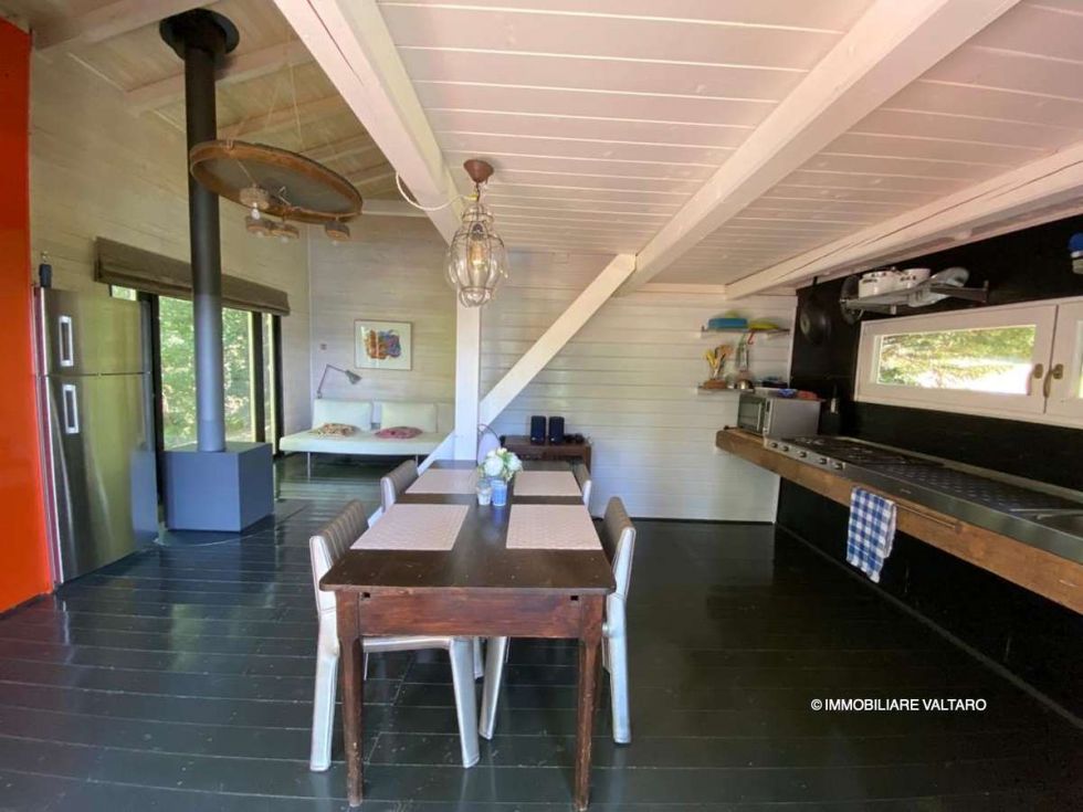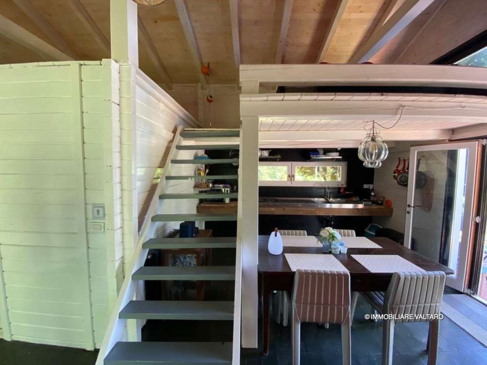 Lo chalet misura 42 mq. ed è composto da: soggiorno con angolo cottura, una camera da letto e un bagno con sauna.