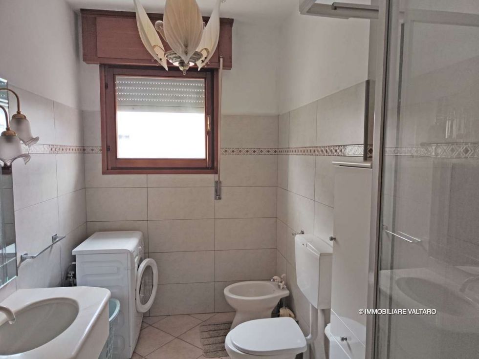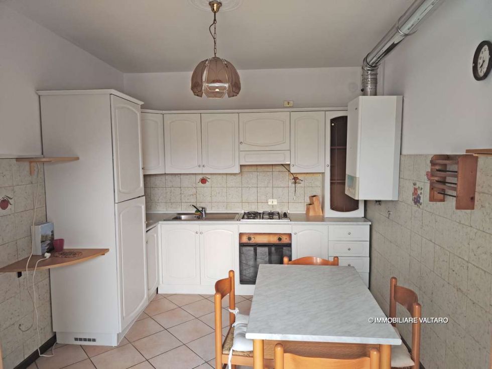 appartamento da 95 mq. circa, posto al secondo piano e composto da: soggiorno con terrazzo, cucina con balcone, due camere da letto, un bagno; garage con cantina.