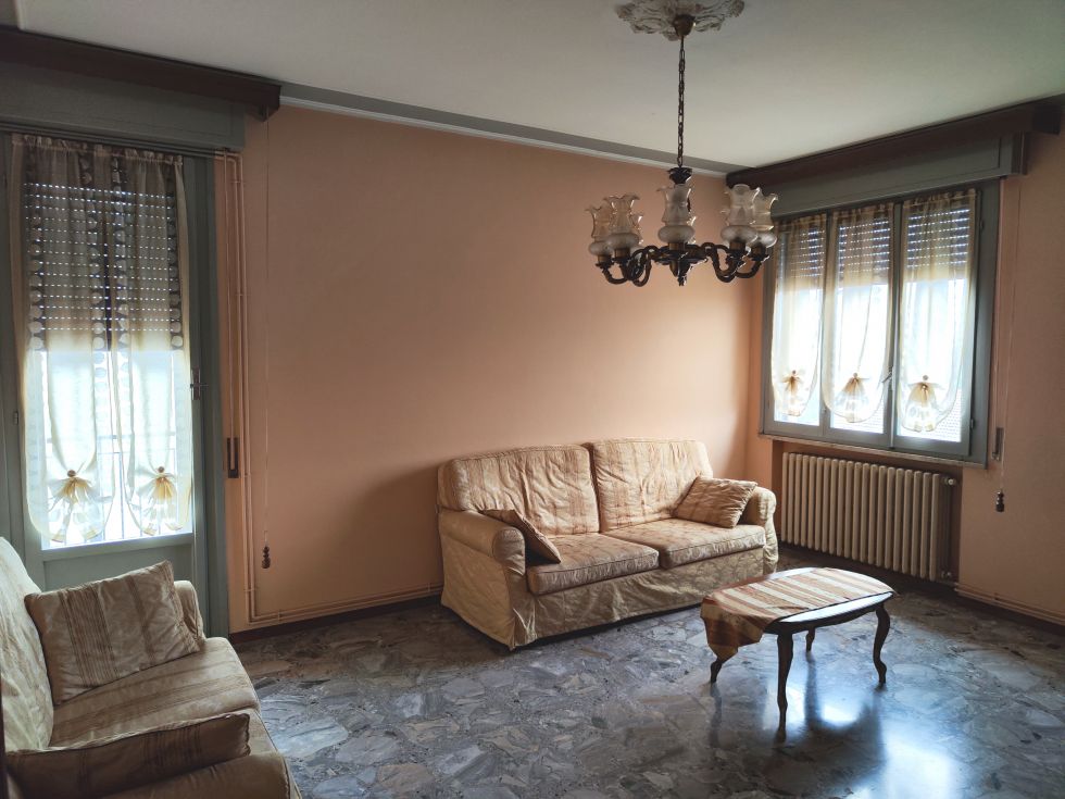flat of approx. 100 m², located on the third and last floor, comprising: living room with balcony, kitchen with balcony, three bedrooms (two of which with balcony), one bathroom; cellar and garage for a utility car.