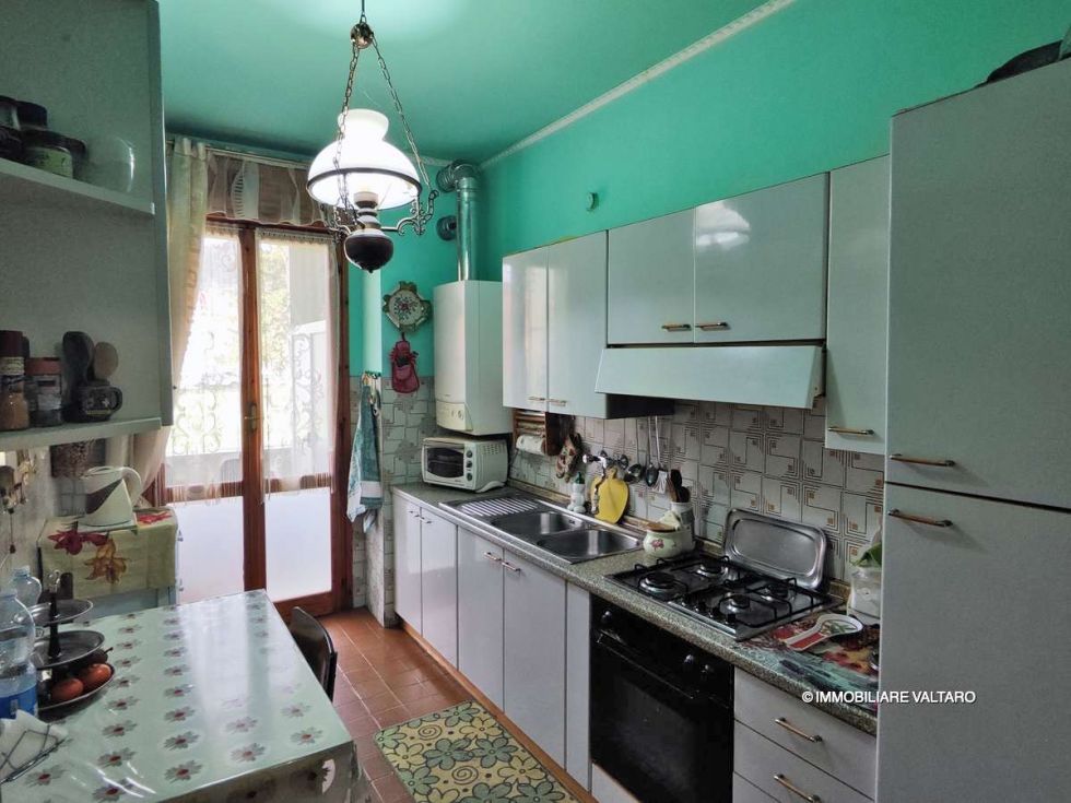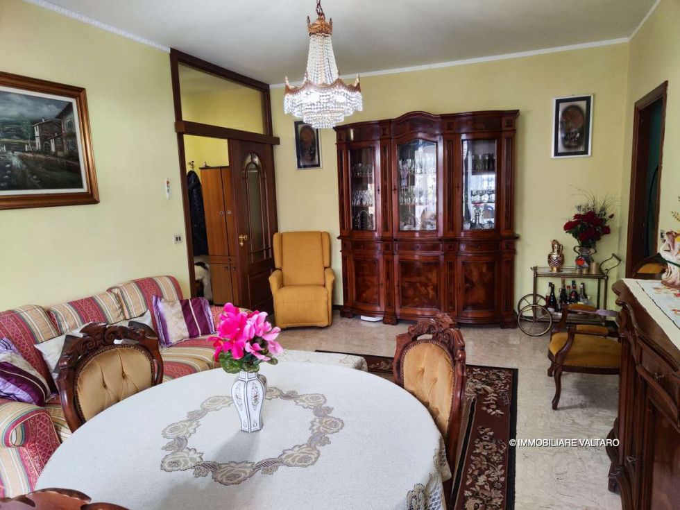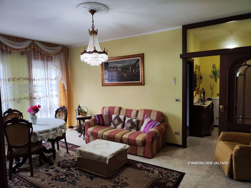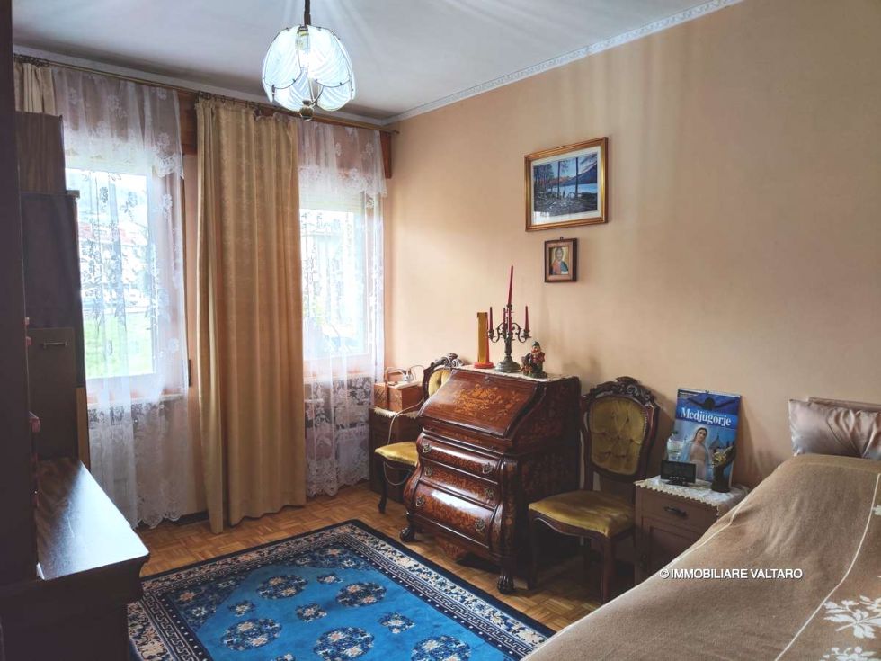 flat in excellent condition, measuring approximately 80 m², located on the mezzanine floor, comprising: living room with balcony, kitchen with balcony, two bedrooms, one bathroom; garage and cellar.